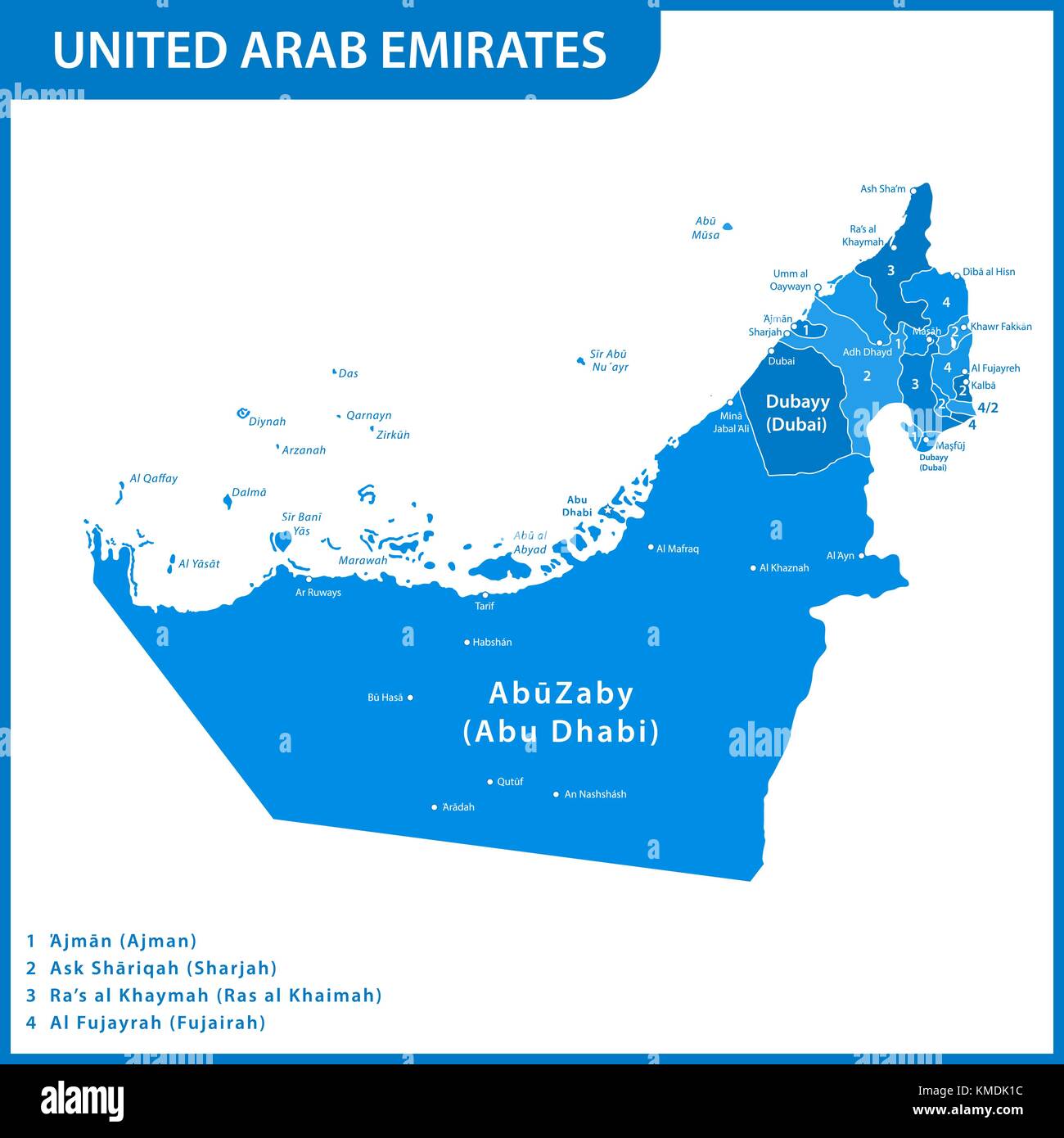 Detailed Map Uae Regions States Cities: vector de stock (libre de